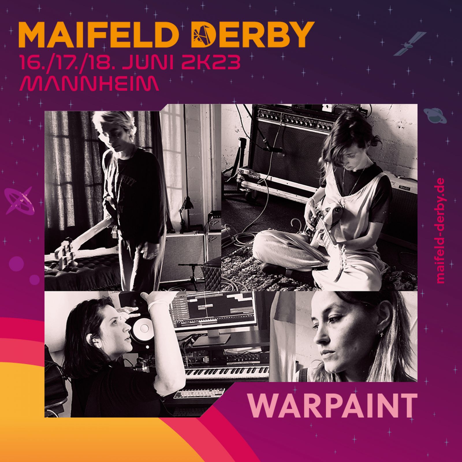 Nach fast 10 Jahren kommen Warpaint zum zweiten Mal aufs Maifeld Derby. Dieses Jahr beschließen sie die Open Air Bühne und werden euch mit ihrem verhuscht-treibenden Sound in die Nacht überführen. Allein die Vorstellung sorgt schon für Gänsehaut. Einziges Deutschland-Konzert. Berlin zählt nicht. “Augen zu durch” ist hier ausschließlich positiv konnotiert. Es darf ungeniert geträumt werden.